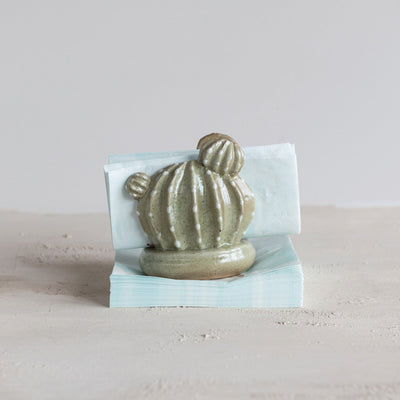 Portaesponja / Servilletero de Gres en Forma de Cactus