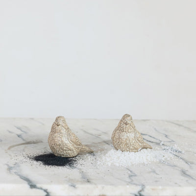 Salero y Pimentero de Gres Repujado Pajaritos – Set de 2