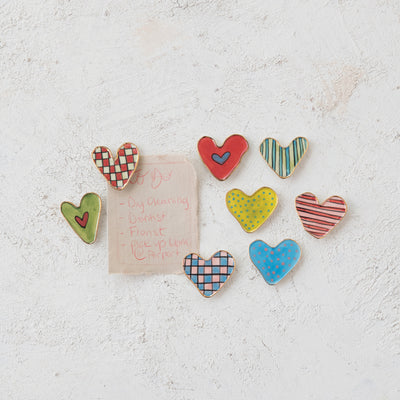 Imán de Gres Pintado a Mano en Forma de Corazón con Borde Dorado – 8 Estilos - Venta por Unidad