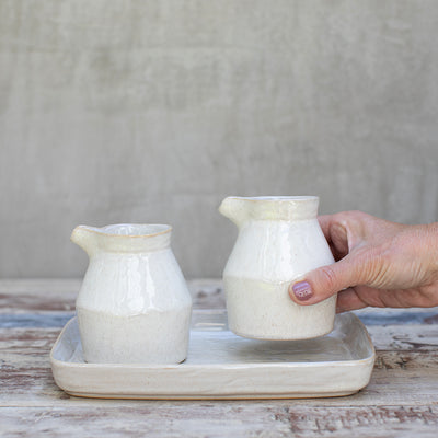 Salero y Pimentero de Cerámica con Soporte en Forma de Concha – Set de 3