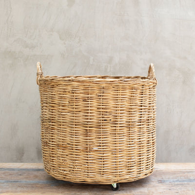 Canasto de Ratán Redondo con Ruedas Extra Grande