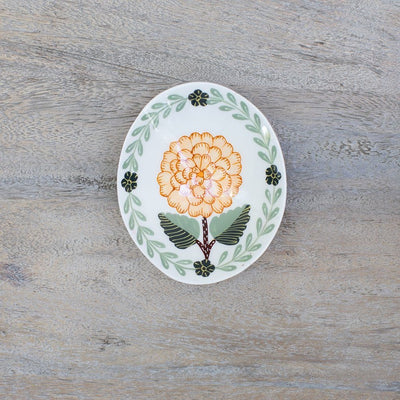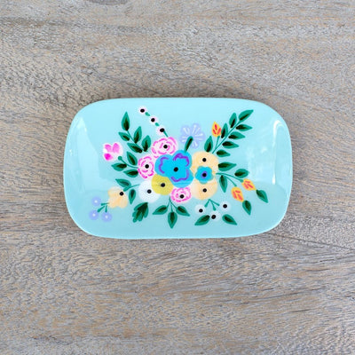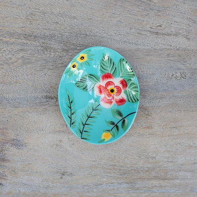 Mini Bandeja Floral Verde Oliva Madera Mango