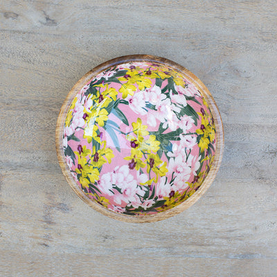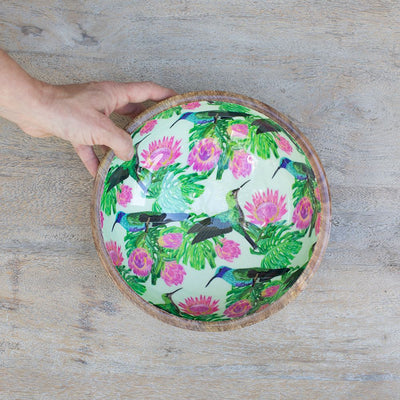 Bowl de Madera de Mango con Diseño de Hojas Verdes
