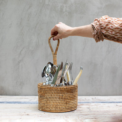Porta Cubiertos Redondo Ratán Natural – Colección Ratán Myanmar