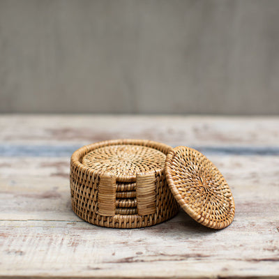 Set Posavasos de Ratán con Estuche — 6 Unidades