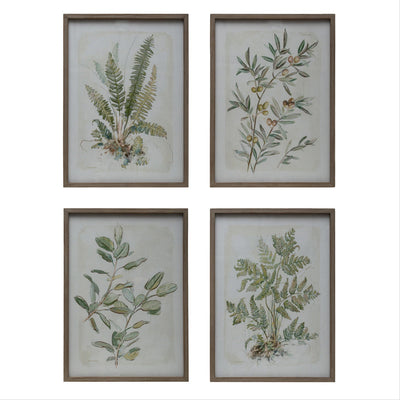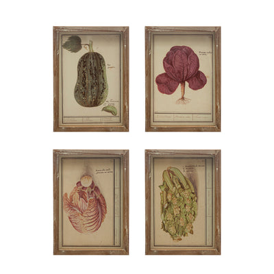 Cuadro con marco de madera y vidrio – Reproducción vegetal vintage - 4 estilos - Venta por unidad