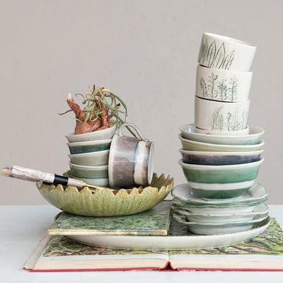 Plato Rústico de Cerámica Gres con Borde Festoneado Verde