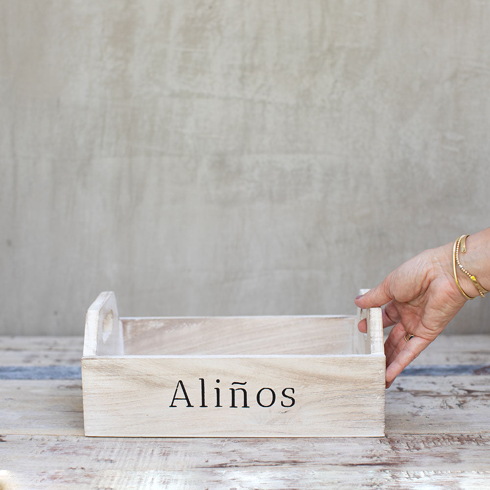 La Caja Aliños está hecha en madera de pawlonia, pensada para organizar y decorar sin agregar peso.