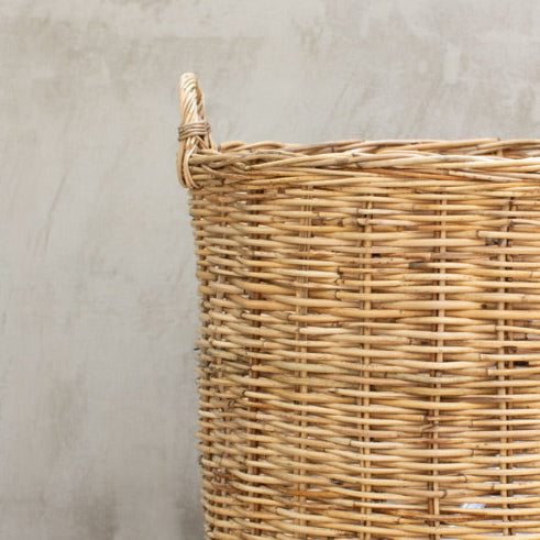 Este canasto artesanal tejido a mano en rattan natural combina funcionalidad, resistencia y estética atemporal. Su diseño versátil con ruedas incorporadas facilita el transporte sin esfuerzo, incluso cuando está lleno, convirtiéndolo en un aliado indispensable para el día a día del hogar.