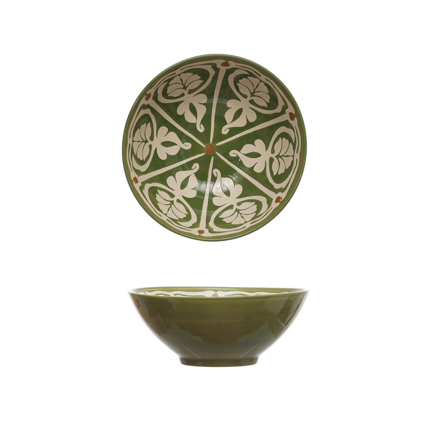 Cuenco de Gres Pintado a Mano – Verde y Marrón