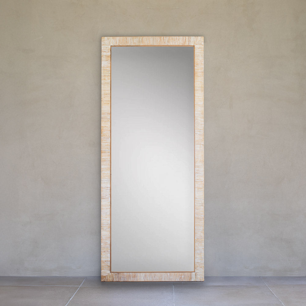 Espejo de cuerpo entero con marco de ratán natural de trama visible. Aporta luz y textura cálida, ampliando visualmente los espacios sin perder la simpleza del estilo Simple by Puro. Funciona perfecto apoyado en el piso o colgado en vertical.