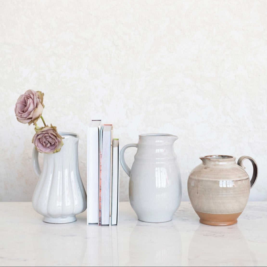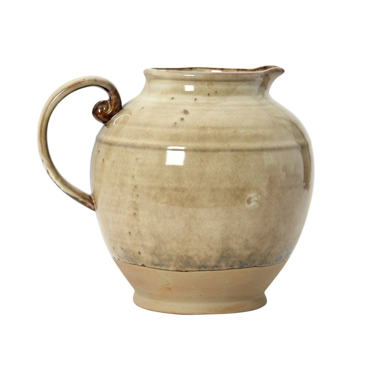 Cada jarra está elaborada en gres de alta calidad y recubierta con un esmalte reactivo que crea variaciones únicas en color y textura, haciendo que ninguna pieza sea igual a otra. Su diseño robusto pero elegante la convierte en una pieza versátil: tan práctica para el uso diario como encantadora para ocasiones especiales.