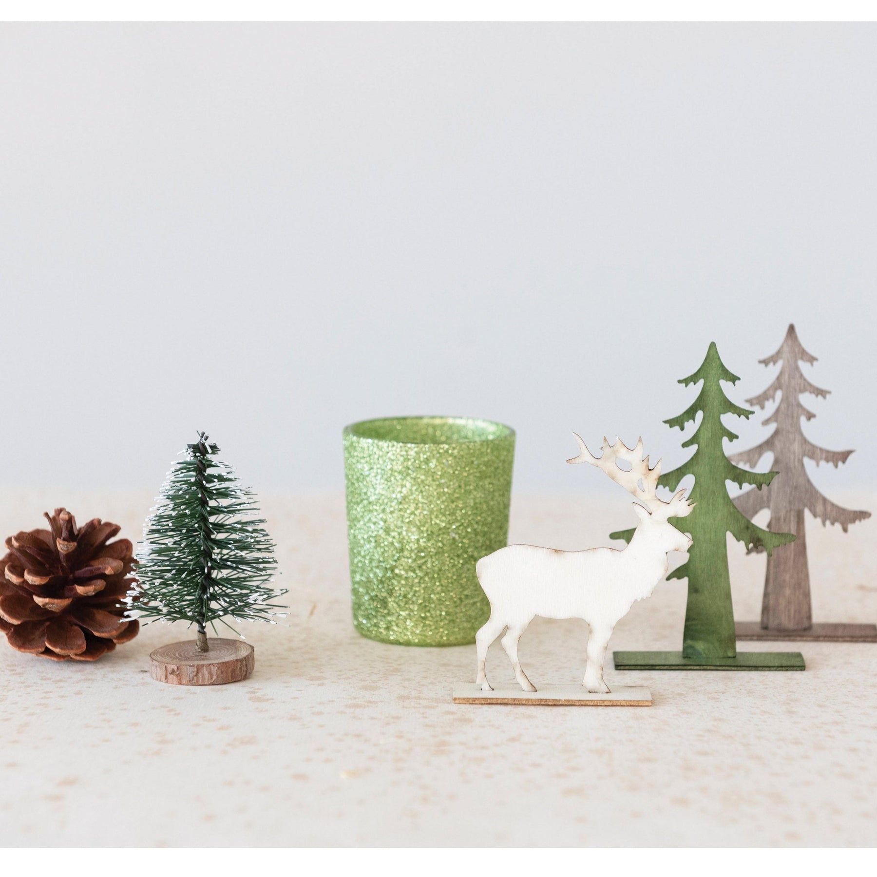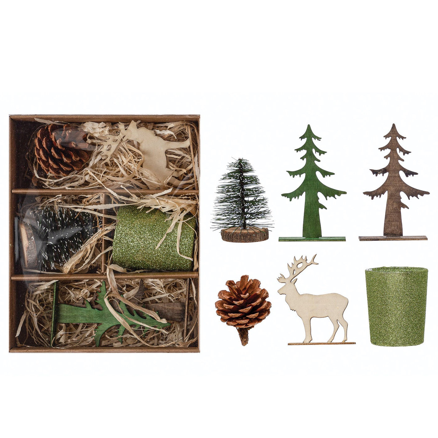 Crea un rincón mágico en tu hogar con este precioso kit decorativo navideño. Incluye todos los elementos para armar una pequeña escena invernal sobre una bandeja, repisa, centro de mesa o mueble de entrada.