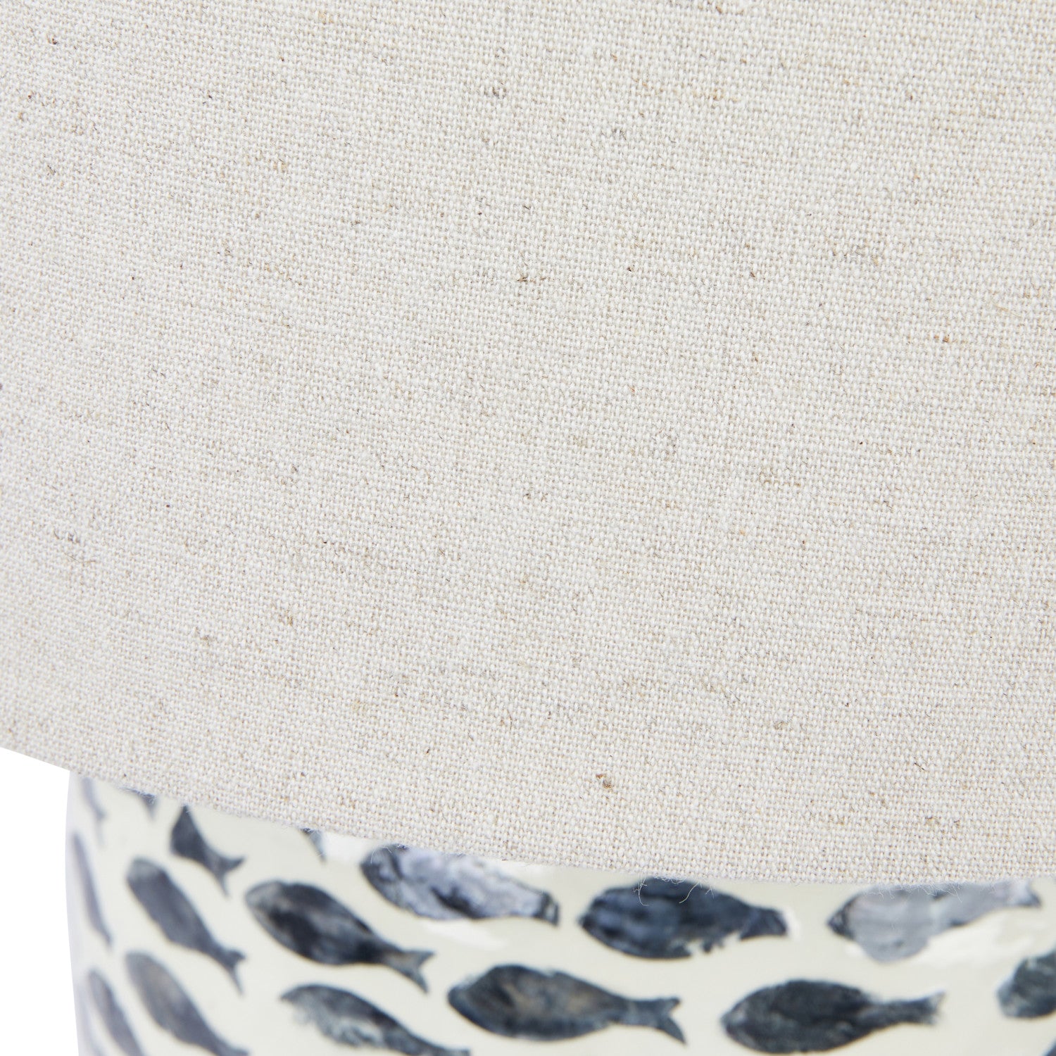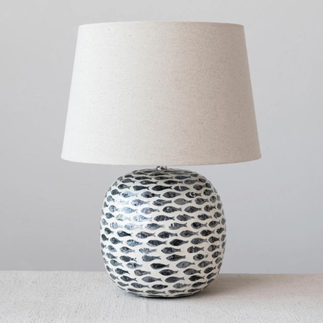 Lámpara de Mesa de Capiz y Bambú con Pantalla de Lino – Azul y Blanco