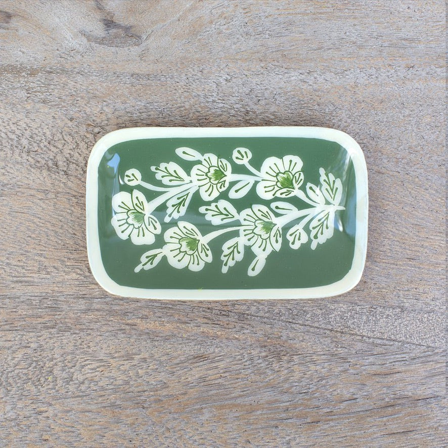 Mini Bandeja Floral Verde Oliva Madera Mango