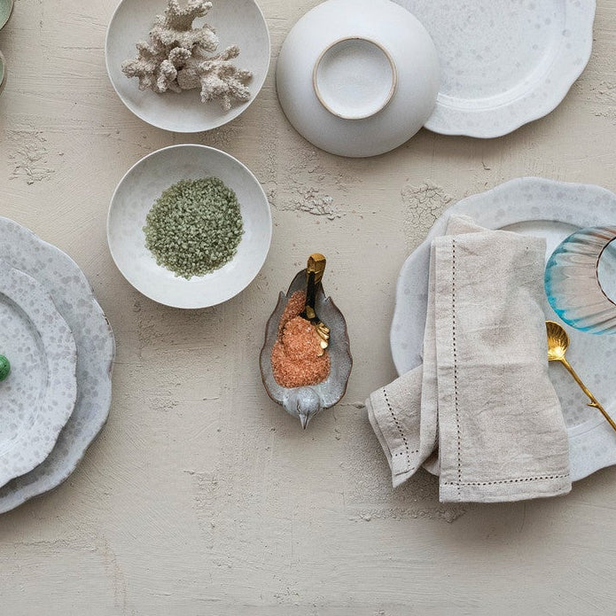 Este plato decorativo en forma de pájaro está elaborado en cerámica con acabado esmaltado en tonos blancos suaves y matices naturales. Su diseño orgánico y artesanal lo convierte en una pieza única, ideal para añadir un toque sutil y elegante a cualquier espacio.