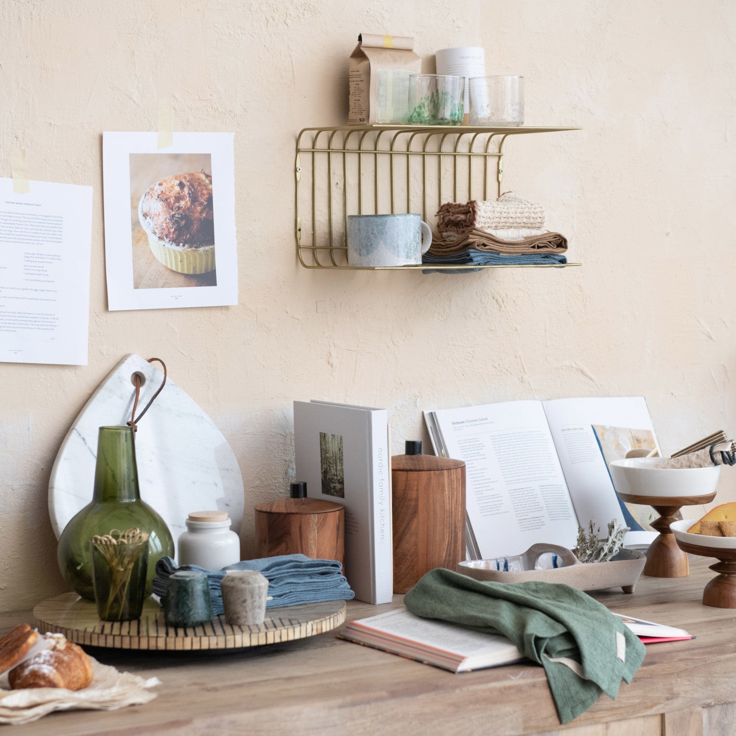 La Repisa de Pared de Alambre Metálico en acabado latón antiguo es la mezcla perfecta de practicidad y diseño decorativo. Su estructura de varillas metálicas le da ligereza visual y un aspecto moderno con un toque retro.