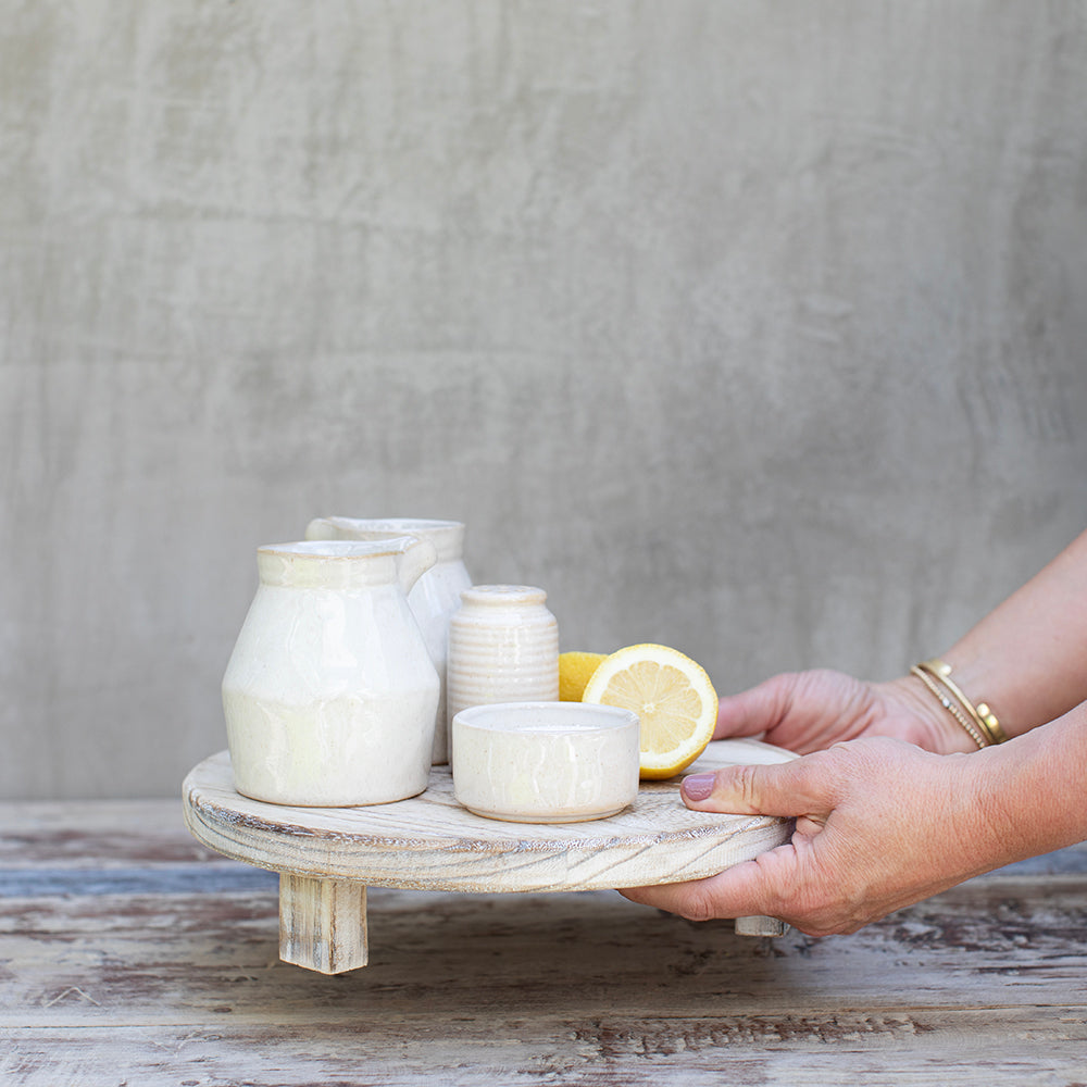 La Tabla Redonda Elevada está hecha en madera de pawlonia, pensada para servir y decorar sin agregar peso.